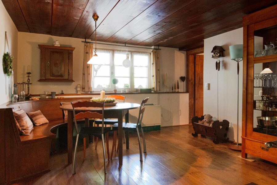 Beheizt wird das gesamte Objekt mit einer Ölzentralheizung (100 KW) und zusätzlichen Umluftheizkörpern im Erdgeschoss. Passend zum Charme des alten Landhauses befindet sich im Erdgeschoss ein rustikaler Kachelofen mit den traditionellen grünen Fliesen. Im Winter sorgt dieser ebenfalls für angenehme Wärme und die Ofenbank bietet Ihnen und Ihren Gästen ein kuscheliges Plätzchen.